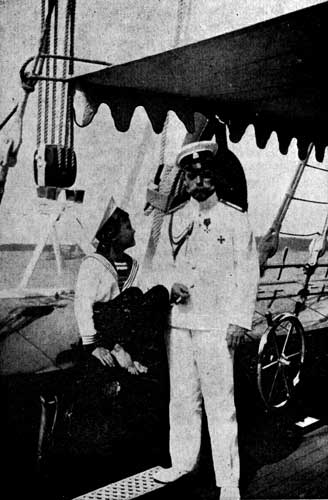 ![]() Государь с Наследником на палубе императорской яхты "Штандарт" |