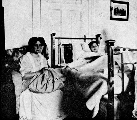 ![]() Мать и сын. Императрица Александра Федоровна у изголовья больного царевича. г. Спала, 1912 г. |