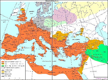 В Риме двуглавый орел появился при Константине Великом в 326 году и в 330 году стал государственной эмблемой великой Римской империи. После распада Римской империи он стал символом Византийской империи. Двуглавый орел не был тогда гербом Византии, не изображался на печатях и монетах, но присутствовал на знаменах и одежде императоров.