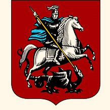 Герб Москвы : на красном поле всадник в серебряных доспехах и лазоревом плаще. Привстав на стременах, он вонзает копье в золотое тело дракона с зелеными крыльями. Это символ победы добра над злом. Раньше Москва имела другой герб: мирный всадник с ловчим соколом на руке. Этот всадник вполне соответствовал Москве, которая была еще не готова бороться с Золотой Ордой. Всадник с копьем появился после битвы московского князя Дмитрия Донского с монголо-татарами на Куликовом поле.