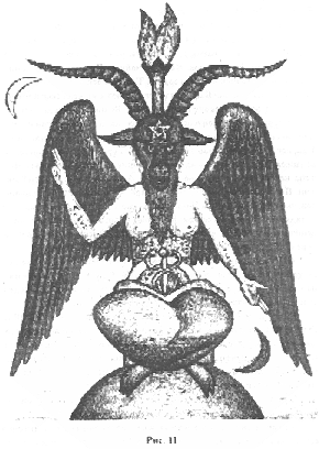 На рисунке 11 изображен идол поклонения масонов Бафомет Тамплиеров. Рисунок этот взят все из той же книги "Догма и обряд высшей магии".