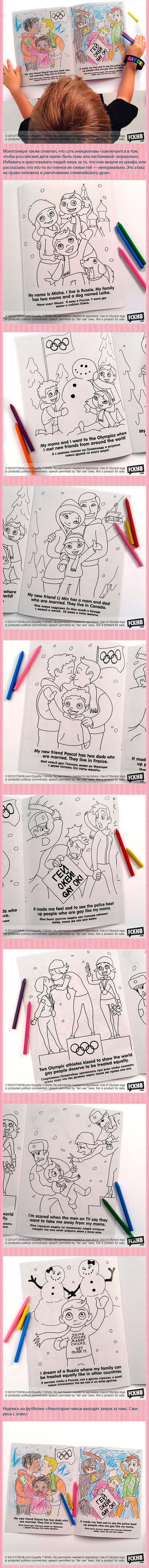 Американская компания выпустила 10 тысяч книжек-раскрасок под названием "Миша и его мамы едут на Олимпиаду", повествующую о приключениях нетрадиционной семьи в Сочи. Книжки будут бесплатно раздаваться российским детям во время Игр. Вдохновителями этой идеи стали российские чиновники. В последнее время они не раз изымали из продажи подобную продукцию под предлогом борьбы с пропагандой гомосексуализма.
