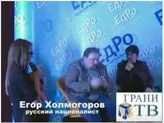 Но вот нас снабдили радиомикрофонами и посадили на центральное место в зале4 оказалось, что массовка программы «НТВ-шники» предназначалась как раз для этой записи. Самое левое кресло в нашем ряду занял Егор Холмогоров, русский националист. О нём я прочитал в Википедии следующее: «Егор Станиславович Холмогоров — публицист, политический деятель, русский националист, главный редактор сайтов «Русский Обозреватель» и «Новые Хроники». Родился 15 апреля 1975 года в Москве. В 1992 году закончил гуманитарный класс московской общеобразовательной школы № 57 (одноклассник интернет-дизайнера Артемия Лебедева, поэта Кирилла Решетникова, журналиста Константина Чернозатонского и др.).