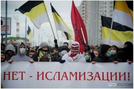 А здесь мы видим другой аспект «Русского марша». Каждый народ волен выбирать себе религию, и если русский народ связал свою судьбу с христианством восточной церкви, то строительство в последние годы огромного количества мечетей в исконно русских городах, в том числе и Москве, вполне могло вызвать негативную реакцию коренных жителей. Правда, выражать своё несогласие с действием правительства по поводу некоторых перекосов в национальной политике русские обычно не привыкли выражать шествиями, тем более с выкрикиванием националистических лозунгов. Похоже, что к мирной демонстрации добропорядочных людей – а мы их видели на рис. 12 с открытыми лицами – добавилась демонстрация людей с закрытыми лицами и иными взглядами.