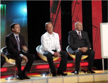 О Мединском в Википедии написано следующее: «Владимир Ростиславович Мединский (18 июля 1970, Смела, Черкасская область, УССР) — депутат Государственной думы Российской Федерации. Член Генерального совета партии «Единая Россия». Доктор политических наук, профессор МГИМО, член Союза писателей России. Член Комиссии при Президенте Российской Федерации по противодействию попыткам фальсификации истории в ущерб интересам России. Учредитель Фонда поддержки исторических традиций «Возвращение». Забегая вперёд, скажу, что во время передачи он говорил уверенно, чётко, со знанием дела, отстаивая интересы России, ее древней истории.